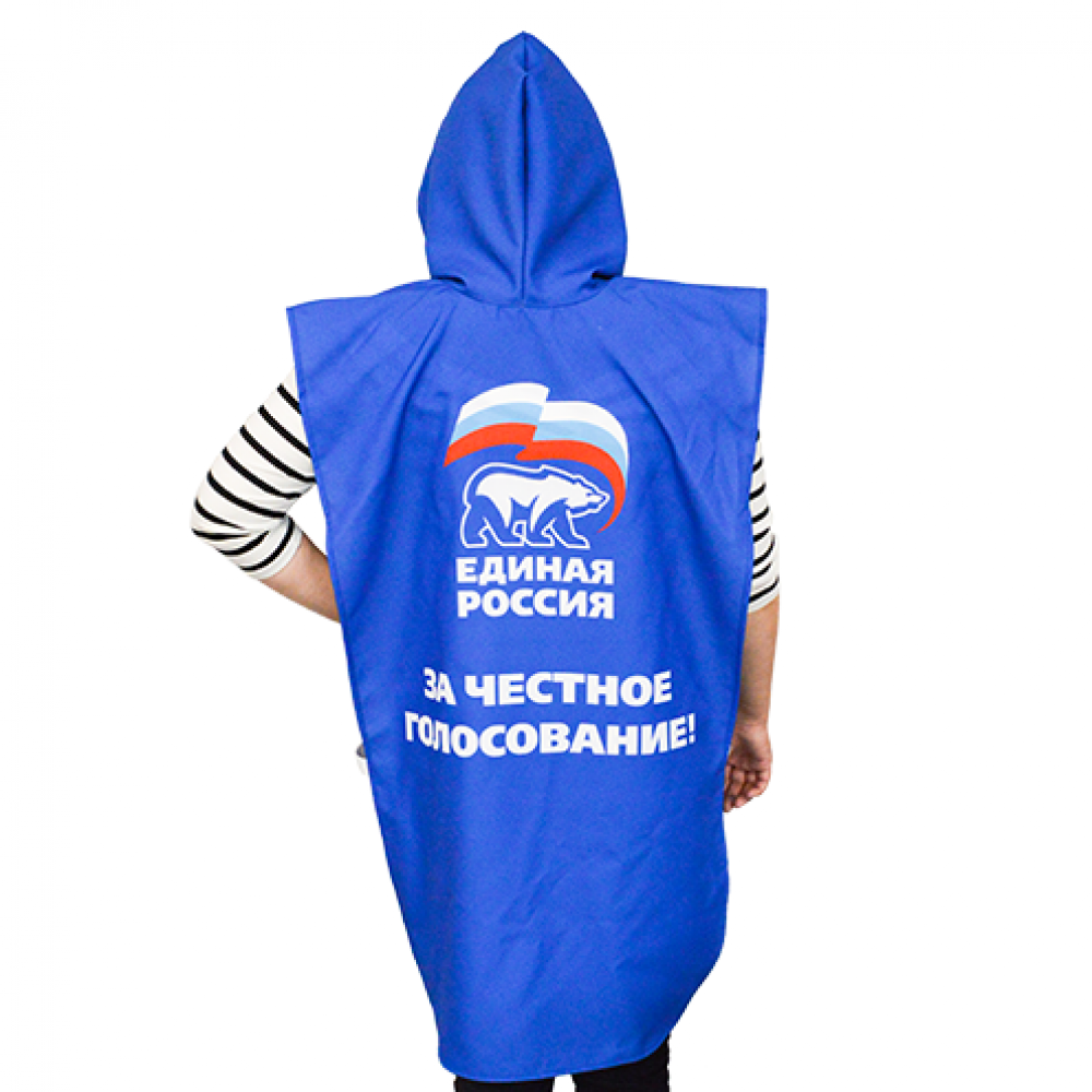 - Полная запечатка: Мы предоставляем возможность полной запечатки накидки, позволяя вам создавать уникальный дизайн с вашим логотипом, надписями и изображениями, которые подчеркнут ваш бренд.