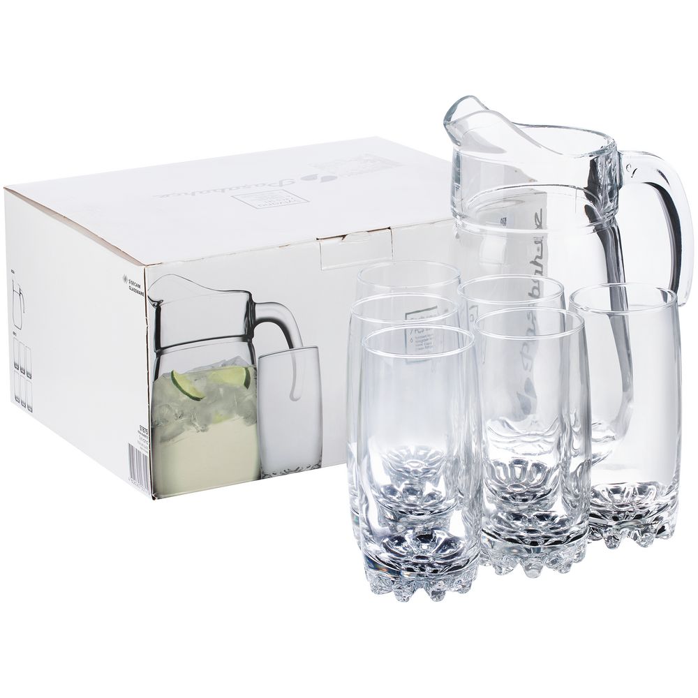 Набор Sylvana включает 6 стаканов и кувшин из прочного и качественного стекла. Элегантный и оригинальный дизайн набора добавит удовольствия от употребления напитков во время праздничного застолья и каждый день.