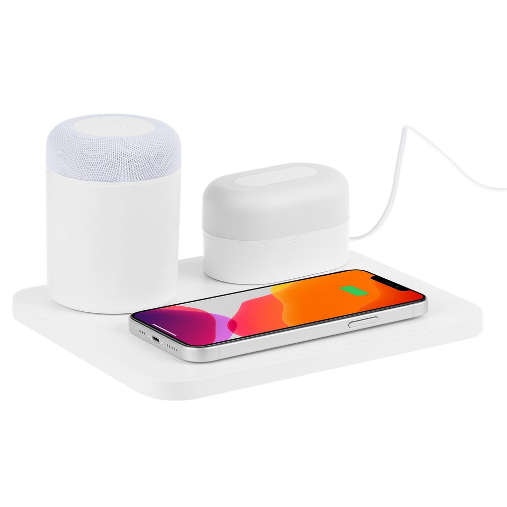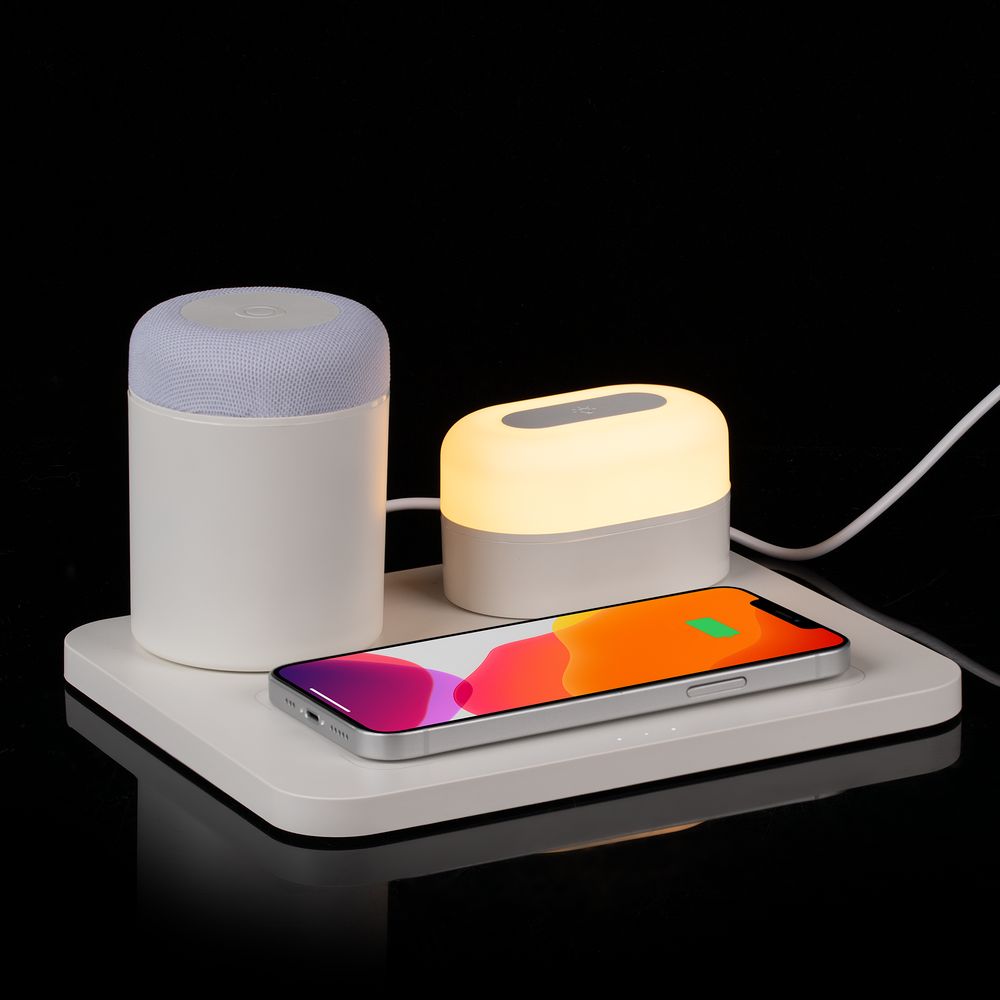 Станция беспроводной зарядки с колонкой и ночником Trilogy, белая